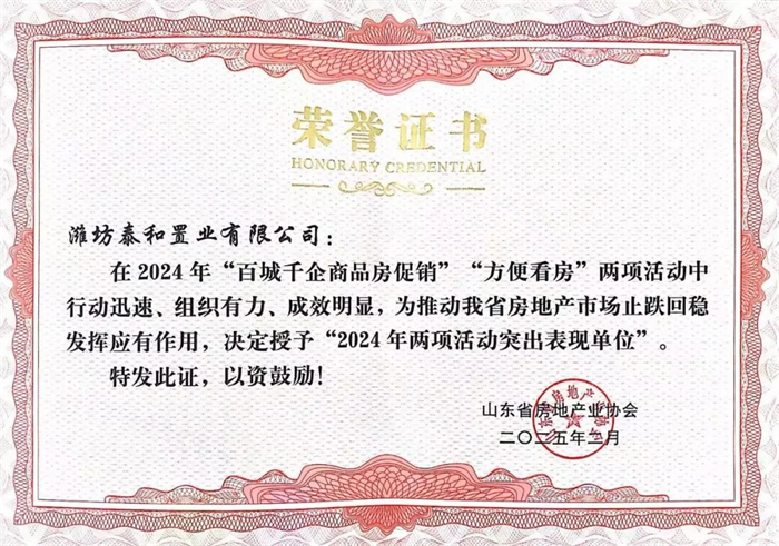 山東省房地產業協會:授予泰和置業“2024年度優秀會員單位”“兩項活動突出表現單位”