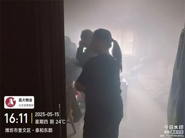下午,西門巡查組在例行衛生清理過程中,王紹艷經理、隋麗萍、梁曉月及保潔主管毛麗梅四人突然聞到濃烈煙味,隨即聽到業主呼救聲。四人來不及做好防護,當即拎起滅火器,沿樓梯飛奔至業主家,發現廚房火勢已起,濃煙彌漫。
