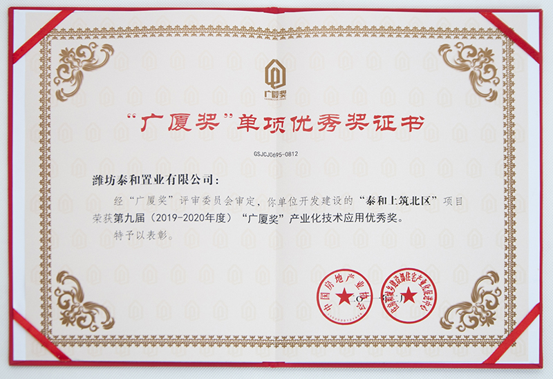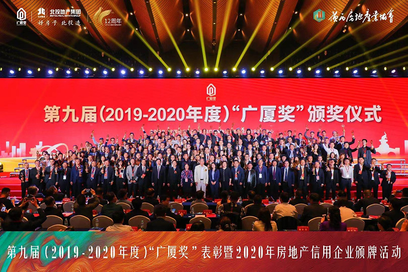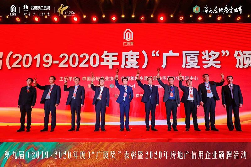2021年4月8日,由中國房地產業協會、住房和城鄉建設部住宅產業化促進中心共同主辦的第九屆(2019-2020年度)“廣廈獎”表彰暨2020年房地產信用企業頒牌活動在廣西南寧隆重舉行。由昌大地產匠心筑造的泰和上筑北區項目憑借卓越的精工品質、科學的建筑規劃、完善的配套服務榮獲第九屆“廣廈獎”和“產業化技術應用優秀獎”兩項榮譽,登上中國房地產行業的最高領獎臺。