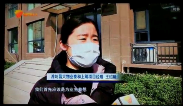 昌大物業的防疫防控措施受到了新聞媒體的特別關注,在濰坊電視臺《直播濰坊》欄目中,對昌大物業在疫情期間所管轄社區的防疫防控做法進行了專題報道,并收獲了社會和業主的一致好評。