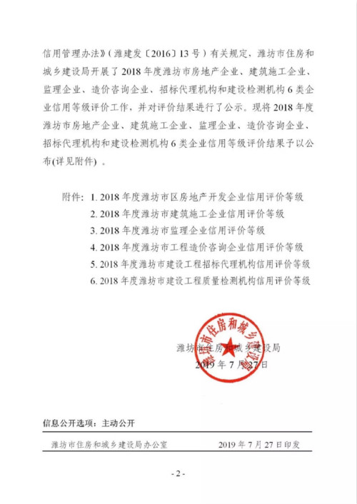 2019年7月27日,泰和置業(yè)榮獲濰坊市房地產(chǎn)開發(fā)企業(yè)信用等級AAA級評價第一名,這已是公司連續(xù)第三年蟬聯(lián)濰坊市房地產(chǎn)開發(fā)企業(yè)AAA信用等級評價排行榜第一名。