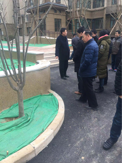 姜建魯帶領陪同人員深入兩個項目現場,對室內和地下車庫施工進度、室外綠化景觀配套等情況作了詳細查驗。檢查過程中,對現場發現的問題及時與項目負責人進行溝通并提出了改進措施。